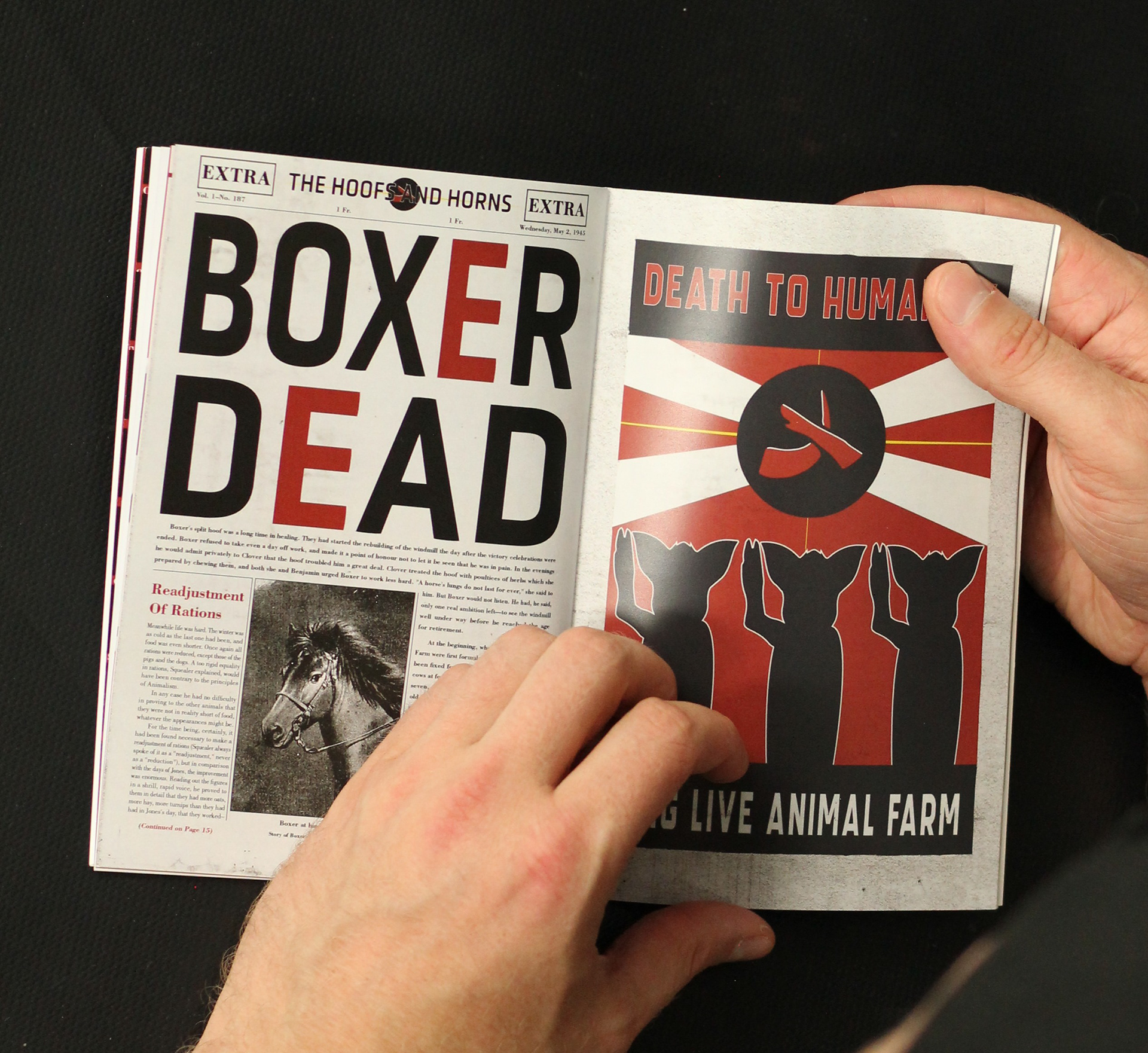 I chose the book Animal Farm by George Orwell, which is an allegory of the Russian Revolution. Therefore, the design choices made were inspired by that era.
